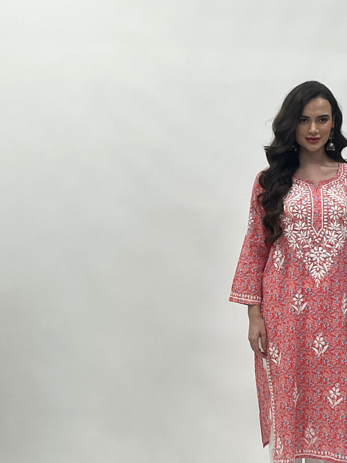The Chikankari Story: Hand Embroidered Pure Cotton Printed Lucknowi Chikankari Kurta available in 4 subtle Colors