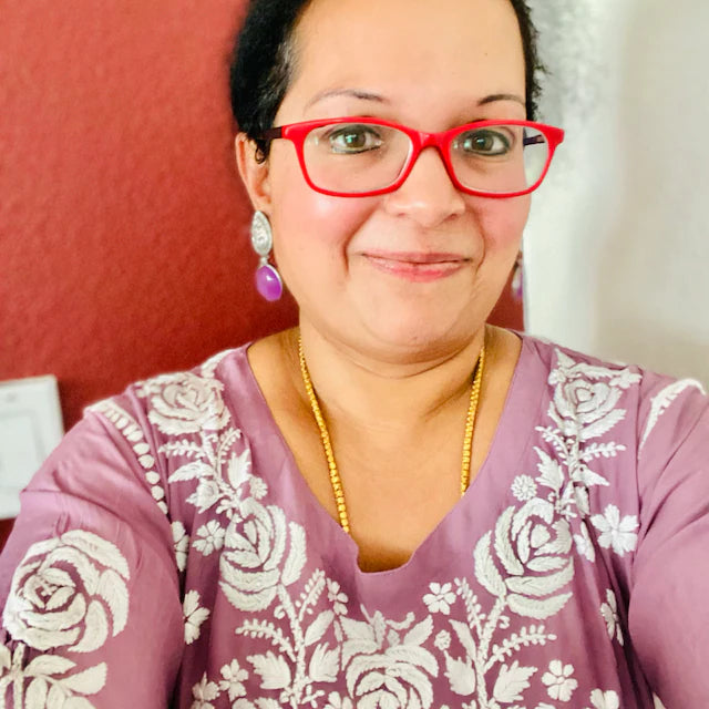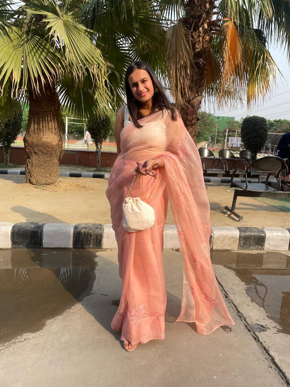 I ordered a pure organza saree and a matching potli, all lucknowi chikankari hand-embroidery. I was skeptical ordering an expensive saree online, but I was absolutely delighted bymy purchase, the fabric was pure organza and the potli matched perfectly. I also asked The Chikankri Story to dye it in my colour of my choosing. -