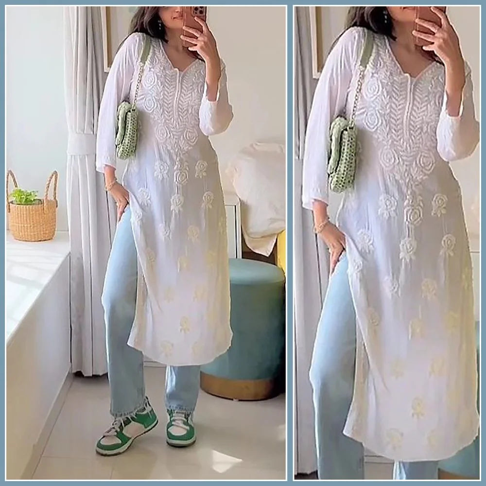 Regular price Rs. 699.00Regular priceUnit price / perRs. 2,799.00Sale price Rs. 699.00The Chikankari Story: Pure Cotton Kurti for Women - Fine Chikankari Machine Embroidery in Ombre Shades of White, Purple, Yellow, Pink, and Blue